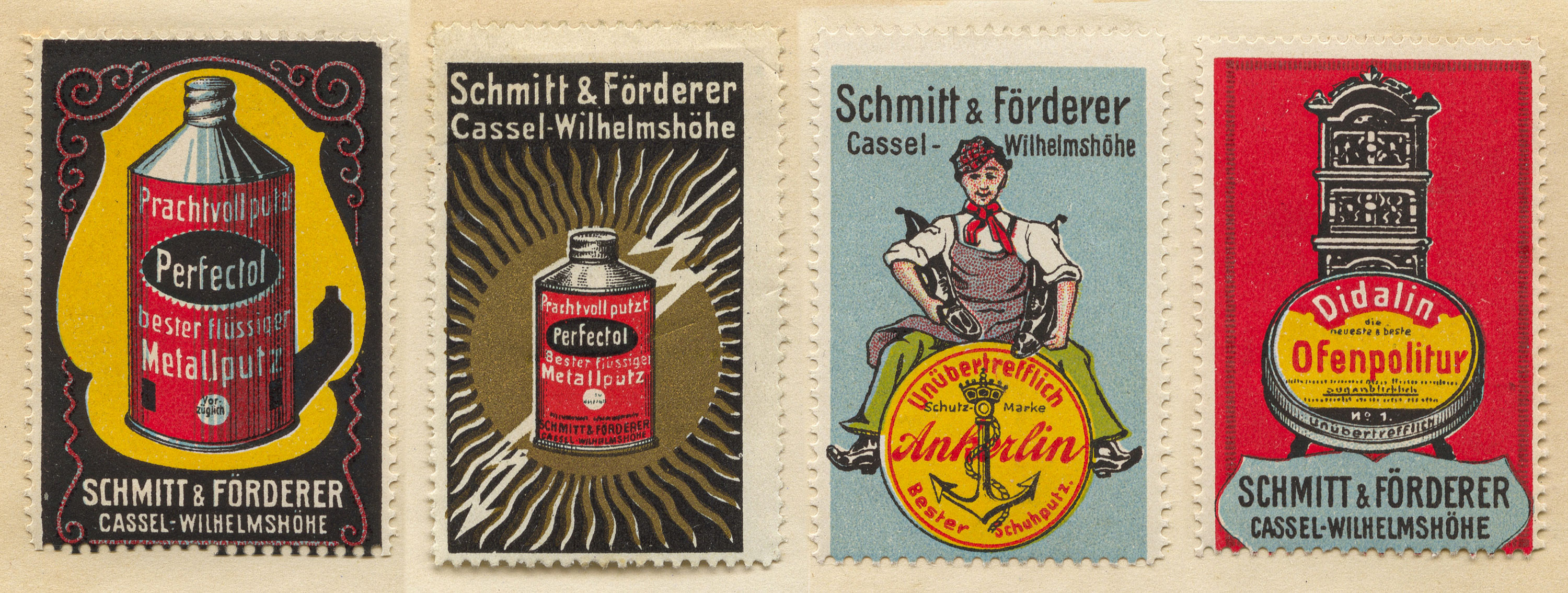 Gebr. Kugelmann, Modewaren, Wilhelmshöher Allee 285 | Wilhelm Höhmann, Dekorationsgeschäft, Kunoldstraße 9 | Baugeschäft Heinrich Krug, Inhaber: Oswald Amelung, Kaiser-Friedrich-Straße 17 (heute Friedrich-Naumann-Straße) | Heinrich Barthmann, Fleischermeister, Wilhelmshöher Allee 322 | Otto Haack, Baugeschäft, Landgraf-Karl-Straße 33 | Müller & Schalles, Dekorationsmaler, Wilhelmshöher Allee 317 | Kolonialwaren Martin Conrad, Wilhelmshöher Allee 326 | Emil Kurz, Nähmaschinen, Grammophone und Fahrräder, Lange Straße 97 | Drogerie Wilhelmshöhe, Inhaber Hans Henss, Wilhelmshöher Allee 315 | Dampf-Brot- und Feinbäckerei Gottlob Markus, Lange Straße 13 | Franz Döring, Fleischermeister, Wilhelmshöher Allee 326 | Georg Seebach, Fleischermeister, Lange Straße 66 | Heinrich Wagner, Schlosser, Wilhelmshöher Allee 333 | Friedrich Ludolph, Schuhe, Lange Straße 56 | Heinrich Schwedes, Schreibwaren, Wilhelmshöher Allee 313 | Heinrich Pfeiffer, Milchhandlung, Lange Straße 17 | Kaiser-Drogerie W. Krug Nachf., Inhaber Hermann Balluff, Wilhelmshöher Allee 304 [siehe Postkarte weiter unten]