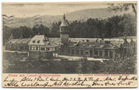 Das älteste Haus der heutigen Villenkolonie: Die Villa des kurfürstlichen Leibmedikus’ Dr. Justus Schmidt, erbaut 1867, die er auch als Kurheim nutzte. →Google-Maps Das Haus wurde 1877 Teil der Kuranstalt Dr. Wiederhold und ging 1920 in den Besitz Dr. Wilhelm Rohrbachs über (siehe hierzu die entsprechenden Unterkapitel im Kapitel »Kurort Wilhelmshöhe«; dort zahlreiche weitere Bilder, auch vom »Schweizerhaus«). Das Bild links trägt auf der Rückseite den handschriftlichen Vermerk: »Gasthof Schweizerhaus, abgebrannt 8.5.1900.« Ein weiterer Hinweis auf eine Zerstörung findet sich nicht. Das Haus wurde wieder aufgebaut, aber im Zweiten Weltkrieg abermals beschädigt und alsbald abgerissen. Heute stehen an seiner Stelle irgendwelche Neubauten. |