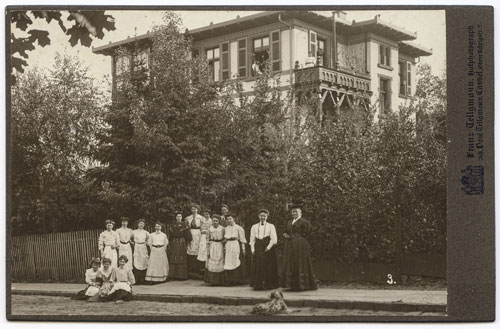 Fremdenverkehrsprospekt von ca. 1934: »Erstklassiges Haus in bester Lage, Bad, flW., Gar., Kaffee-Konditorei-Restaurant.« ![]() »Vor dem ›Fernblick‹«, 1932/33, aus dem Fotoalbum einer Schülerin des Töchterheims Luisenhaus I.*MA |