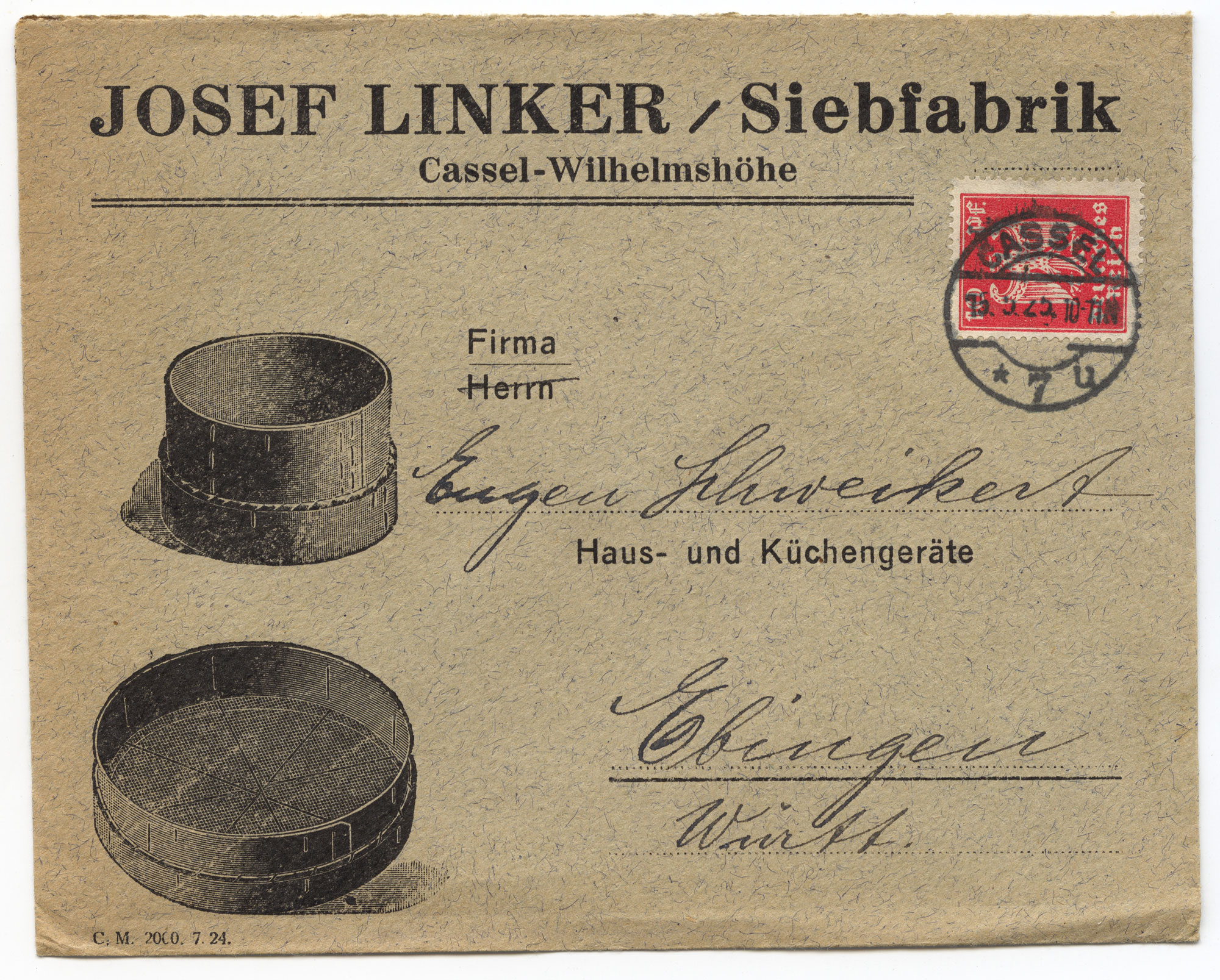 1911 gestempelt: Briefumschlag der Firma »Ludwig Winter, Kassel-Wilhelmshöhe – Kaiser Friedrichstrasse 23 II.«*MA