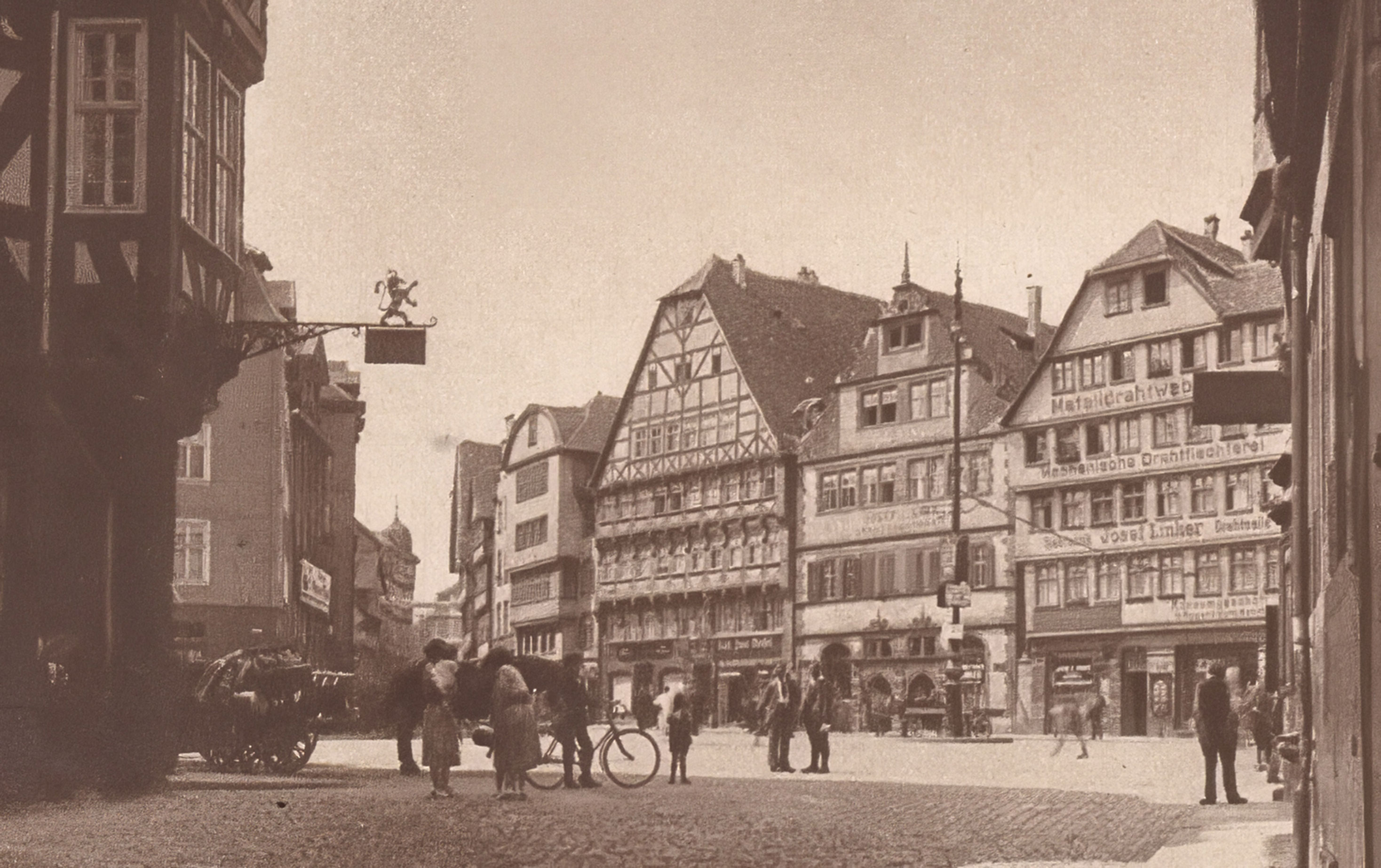 »Restauration Fritz Erkelenz«, gestempelt 1908. Das Haus, damals wie heute mit der Adresse Lange Straße 14, sieht noch genau so aus. Die Querstraße hinten ist die Bremelbachstraße.*MA
