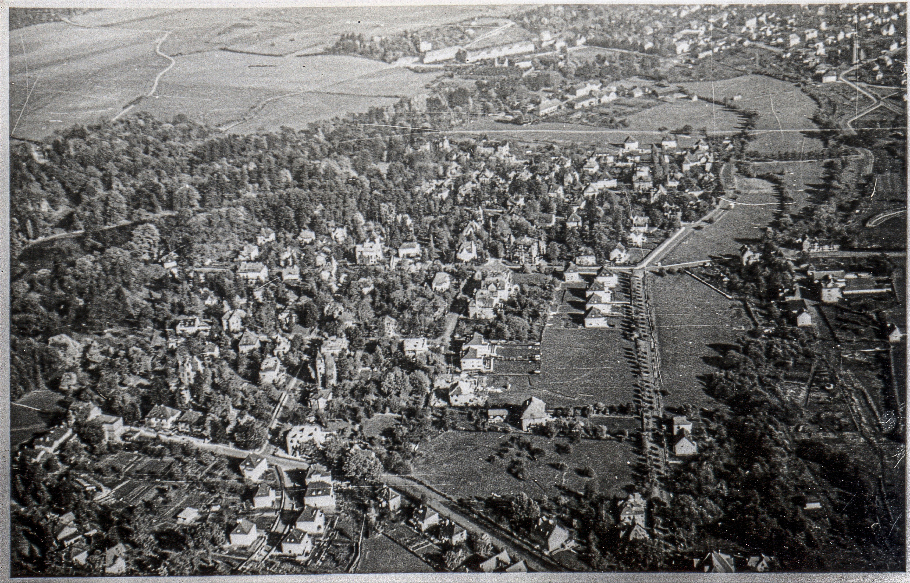 Das Bild, aufgenommen 1961 vom Balkon des Hauses Anthoniweg 2, zeigt die freundlichen 1930er-Jahre-Villen, die auch heute noch den Charakter dieser höchstgelegenen Straße des Villenviertels ausmachen. |