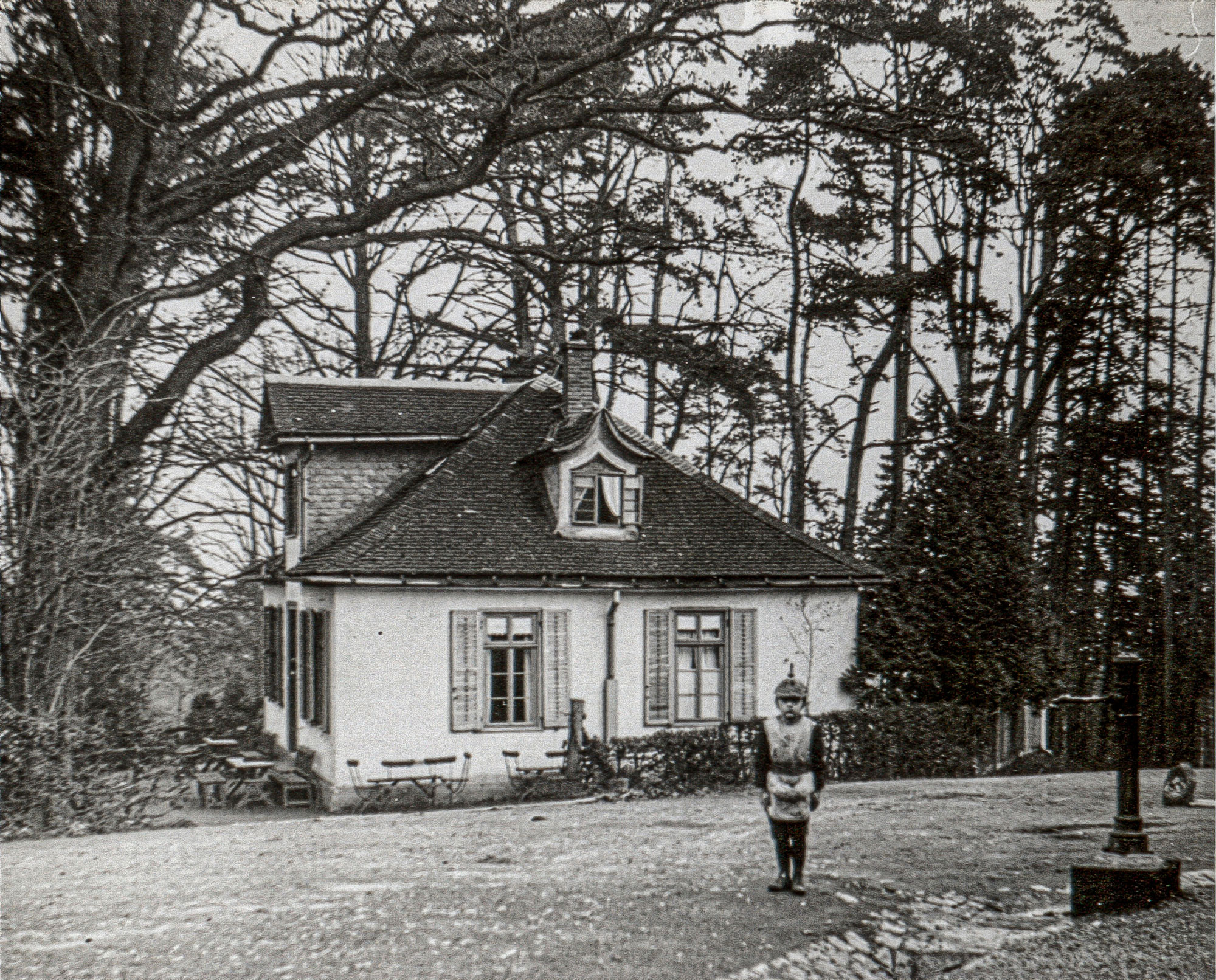 Mulang Nr. 2, »Bagatelle« (Nr. 8 ½; bei Heidelbach, S. 225, »Gutsbezirk 7 ½ [Neumann]«) →Google-Maps Das Häuschen von ca. 1785 diente dem Erbauer des chinoisen Dorfes Mou-lang, Friedrich II. Er wird hier gewiß nie übernachtet, aber wohl hier und da das »Dorfleben« miterlebt haben. Nach dem Abriß des Gutes Juliusstein zur Errichtung des »Neuen Wasserfalls« wurde die »Schweizerin«, die Witwe des Hofgärtners Sennholz, in die Bagatelle umgesiedelt und betrieb Milchwirtschaft, wozu sie auch die umliegenden Mou-lang-Gebäude als Viehställe, Milchkammern etc. benutzte. Zur frühen Villenkolonie-Zeit befand sich in dem Gebäude eine Kaffeewirtschaft. Herr Peter Neumann, geboren in Leipzig am 20.9.1926, wohnhaft in Saarbrücken, sendet mir zu meiner großen Freude Fotos aus der Zeit von 1900 bis 1930 und einen Bericht vom Leben in der Bagatelle in den 1930er Jahren: Meine Großeltern Martha und Georg Neumann lebten in einem Haus aus dem späten 18. Jahrhundert am Rande des Parks Wilhelmshöhe [...]. Das meinem Großvater als Garten-Obergehilfen 1897 von der Königlichen Gartenverwaltung als Dienstwohnung zugewiesene Haus Moulang 8 ½ wurde »Bagatelle« genannt, ihm war eine Stallung und Milchkammer zugeordnet. Ursprünglich hatte 1787–91 Baudirektor Jussow während der von ihm zu beaufsichtigenden Erweiterung des Schlosses dort gewohnt. Später diente es dem Landgrafen als Raststätte, 1826 wurde die Schweizerei dorthin verlegt, die Gebäude ringsum deshalb für Viehhaltung und Meierei hergerichtet. Vorgänger von Georg Neumann (1859–1928) war der Obergärtner Carl Sennholz (1831–1897) gewesen, dessen Rang er erst 1919 erhielt. 1924 wurde er nach 40 Dienstjahren in den Ruhestand versetzt, konnte aber als Mieter in diesem Hause verbleiben. Zwischen 1900 und 1915 betrieb seine Frau als Nebenerwerb eine Kaffee-Aufschütt-Wirtschaft, vielleicht vorübergehend noch in den zwanziger Jahren. Sie wird sich nur an den Sonn- und Feiertagen gelohnt haben. Die ehemalige Milchkammer, ein würfelförmiger, von einem Lichtgaden gekrönter Pavillon diente als Lagerplatz für zerkleinerte Holzscheite zum Kochen und Heizen. Seit 1903 hatten die Neumanns einen Garten am Endpunkt der Straßenbahnlinie gepachtet, ursprünglich neben Grabeland auch mit 5 Obstbäumen, 60 Beerensträuchern und einer Partie Himbeersträucher besetzt, wie der Vertrag bescheinigt. Noch vom Nachfolger erhielten wir zu Weihnachten bis in die Kriegszeit hinein ein Päckchen mit gezuckertem Quittenbrot aus Früchten dieses Grundstückes. Meine 1890 geborene Tante Aenne, die zu Hause geblieben war, starb schon Ende 1925, mein Großvater im Mai 1928, sodass ich an beide keine Erinnerung habe. Hingegen erlebte ich meine Großmutter Martha (1861–1935), Tochter des Kirchditmolder Lehrers Conrad Göbel, bei jährlichen Besuchen seit 1931 in diesem Haus an der Mulangstraße. Im September 1935 begleitete ich ihren Sarg den kurzen Weg die Straße hinab zum kleinen, schon 1817 angelegten und von einer Mauer umgebenen Friedhof für die Angehörigen der Schloss- und Gartenverwaltung an der Ecke Schlossteichstraße, wo Großvater und Tante bereits beigesetzt worden waren. Die Reise von Göttingen nach Kassel war nicht allzu weit. Im Personenzug ging es von Station zu Station über Dransfeld und Hann. Münden, dann die Fulda entlang bis zum Hauptbahnhof Kassel. Von dort aus erreichte man in einer halben Stunde mit der Linie 3 der »Grossen Kasseler Straßenbahn« die Endstation Mulang dort, wo die Rasenallee (heute Kurhausstraße) auf die Mulangstraße und den Eingang zum Schlosspark traf. Die Fahrt führte über Königsplatz, Ständeplatz, Hohenzollernstraße (heute Friedrich-Ebert-Straße), Kaiserplatz (heute Freiherr-vom-Stein-Straße), dann über die Wilhelmshöher Allee am Rote-Kreuz-Krankenhaus und Bahnhof Wilhelmshöhe vorbei zur Landgraf-Karl-Straße und zum Hotel »Palmenbad«, wo die Straßenbahn-Linie in das Druseltal abzweigte, ehe der letzte Abschnitt erreicht wurde. Die Strecke wurde um 1995 eingestellt. Vom Endpunkt waren es nur wenige Schritte zum hart an der bergwärts führenden Straße gelegenen großelterlichen Haus am Rande des Abhangs, der sich zum großen Schlossteich »Lac« hin neigte. Ein zweistöckiger Pavillon-Bau, im Erdgeschoss zwei Fenster jeweils zu beiden Seiten der Eingangstür, über die sich ein klassizistisches Giebeldreieck mit dem Fenster des Obergeschosses erhob. Über drei Treppenstufen betrat man das Gebäude, stand dann in der Diele, die das Haus teilte und auf die Küche zuführte. Es roch muffig, dem Alter und feuchten Klima geschuldet. Der rechte Teil war an eine Untermieterin vergeben, sodass nur die linke Seite für das nach meinem Eindruck dunkle Wohnzimmer beansprucht wurde. Auffällig für mich war die große Wanduhr mit wohlklingendem Glockenschlag, die später eingefasst in ein modern schlichteres Gehäuse unser Göttinger Esszimmer zierte, auch das großformatige Wandbild mit dem einfarbigen Ludwig-Richter-Holzschnitt »Nach der Arbeit ist gut ruh’n«, eine ländliche Idylle mit einem Pfeife schmauchenden Landmann und seiner Familie in der offenen Laube seines Anwesens. Nach hinten zu schloss sich die rückwärtige Kammer an, in der Großmutter schlief und wo sich der mächtige Bauernschrank von 1871 befand, der ebenfalls in Göttingen weiterleben durfte. Neben der Kammer befand sich die Küche, von der aus man den schmalen Streifen Garten entlang der Straße betreten konnte, gegen die man durch Zaun und hohe Hecke abgeschirmt war. Im Obergeschoss befand sich in der Mitte ein Raum, den mein Vater als Arbeitszimmer genutzt hatte, worauf Schreibtisch und Büchergestell noch hinwiesen ebenso wie das an der Wand aufgehängte Schmuckblatt mit dem Porträt des letzten deutschen Kaisers, eine Schulprämie. Als ich es einmal abnahm, entdeckte ich zu meinem Schrecken auf der Rückseite krabbelnde Schaben. Zu beiden Seiten dieses Mittelteils befanden sich unter den Schrägdächern mi